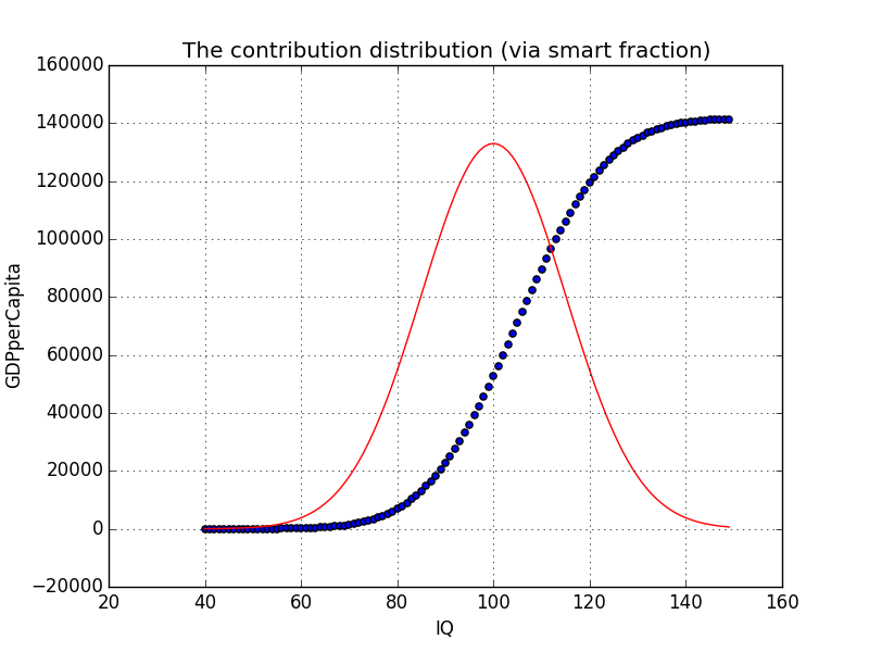 So what kind of correlation should we expect? If the European-Amerindian-gap is 16 points, similar to the Hispanic standard deviation, shouldn’t we expect admixture to explain a very significant part of the variation? Well, actually not. If admixture is uniformly distributed the mean difference in admixture between two Hispanics is only 33.3%. This means the average IQ difference explained by admixture would at most be 5-6 points. But the admixture is not uniformly distributed, Hispanics with less than 40% European admixture are notably rarer. This is why the actual standard deviation of admixture is just 23.3. So we are down to less than 4 points explained by admixture. This would lead to a correlation of 0.50 … given perfect data. But both the admixture data and especially the IQ data invariably contain noise, reducing this correlation further. So it is actually not surprising that we only see correlations between 0.17 (for the very range-restricted African Americans) and 0.41 (for much more uniformly distributed African-European Hispanics).
